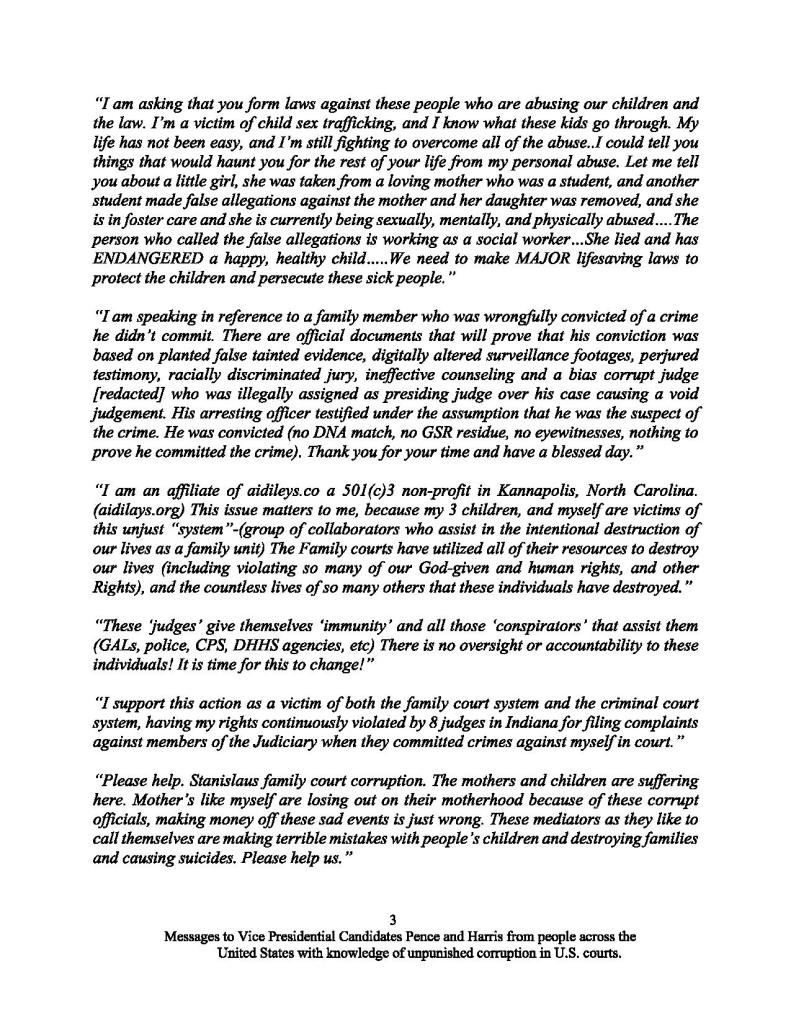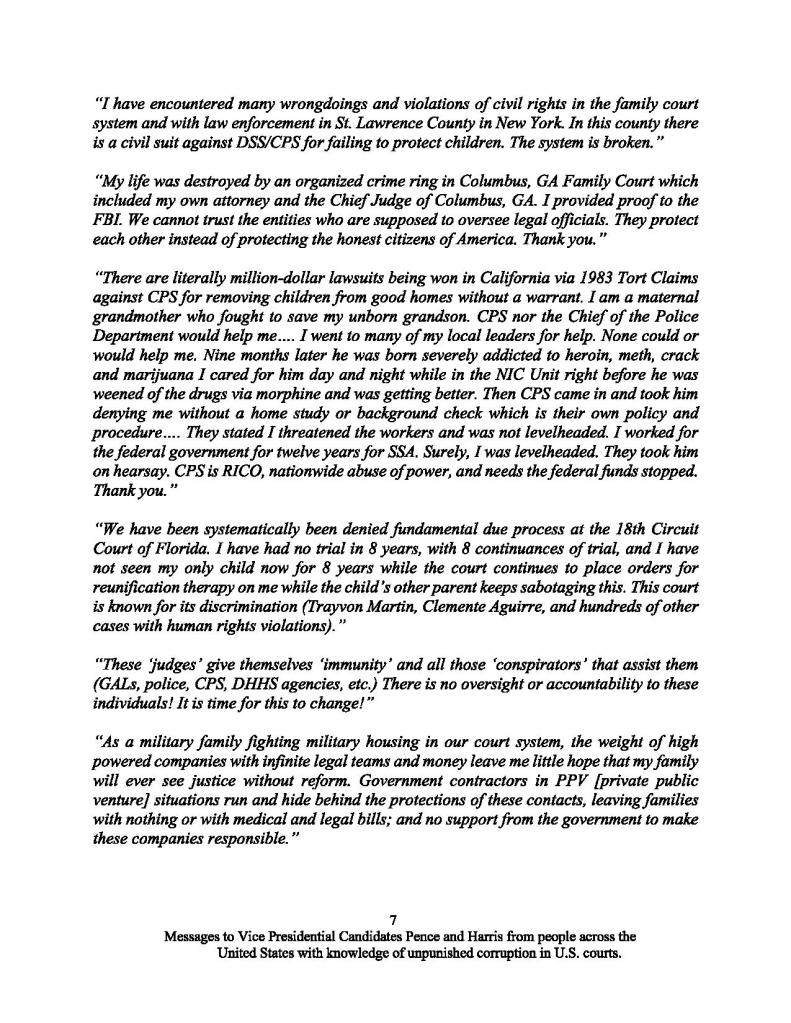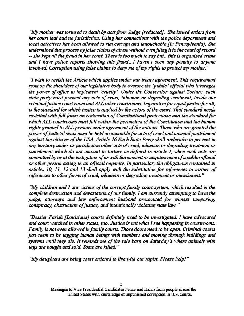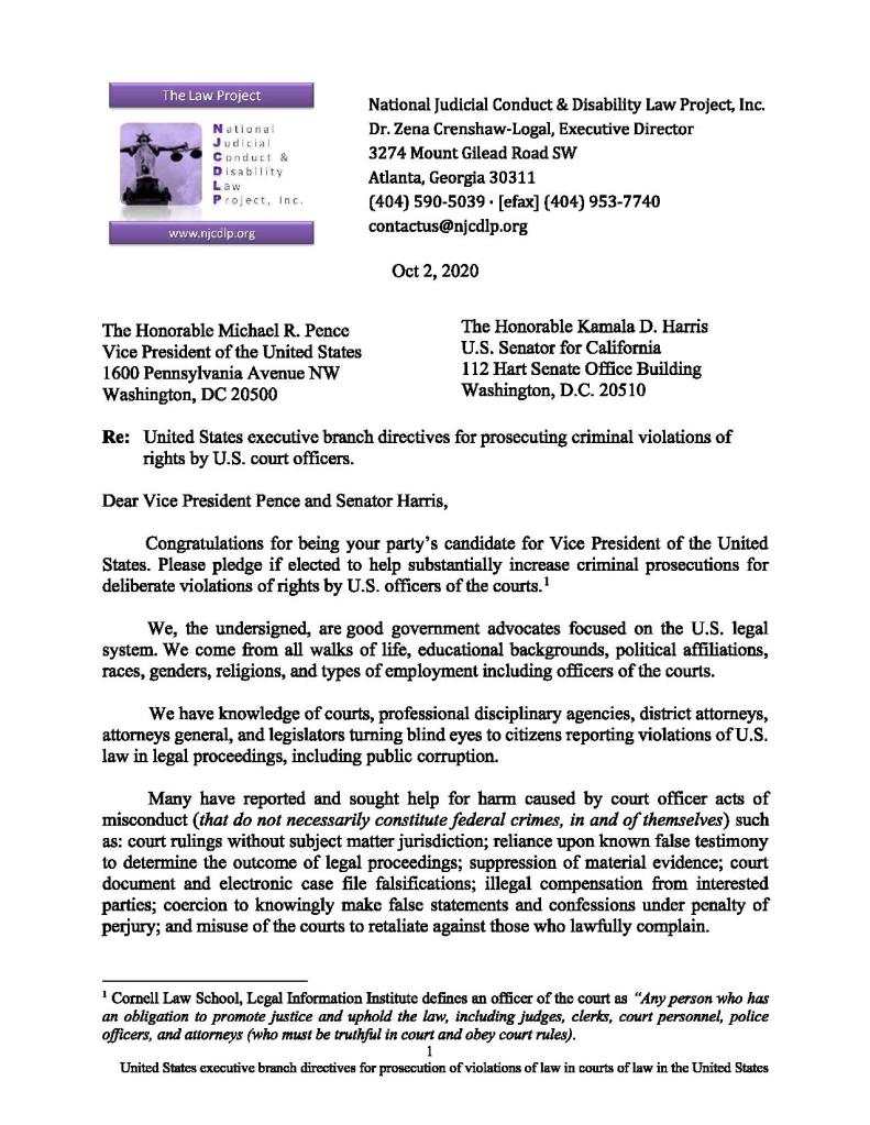 The following letter and enclosures were mailed to Vice President Michael Pence and Senator Kamala Harris on October 3, 2020. We want to know:
