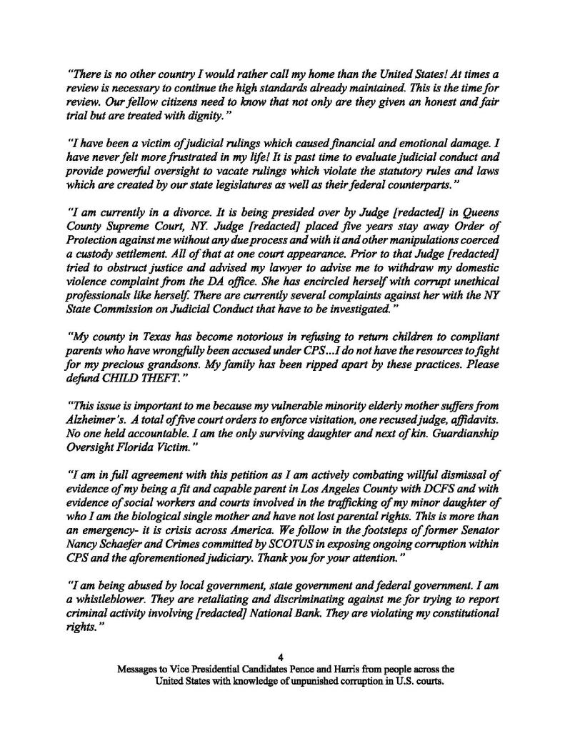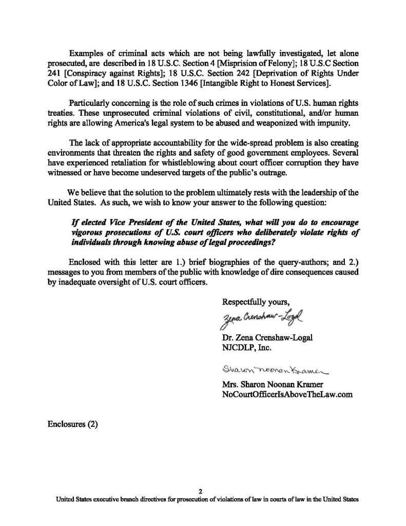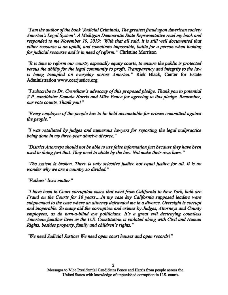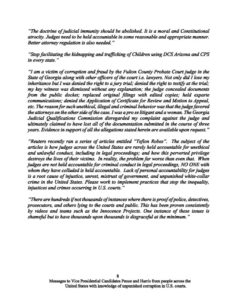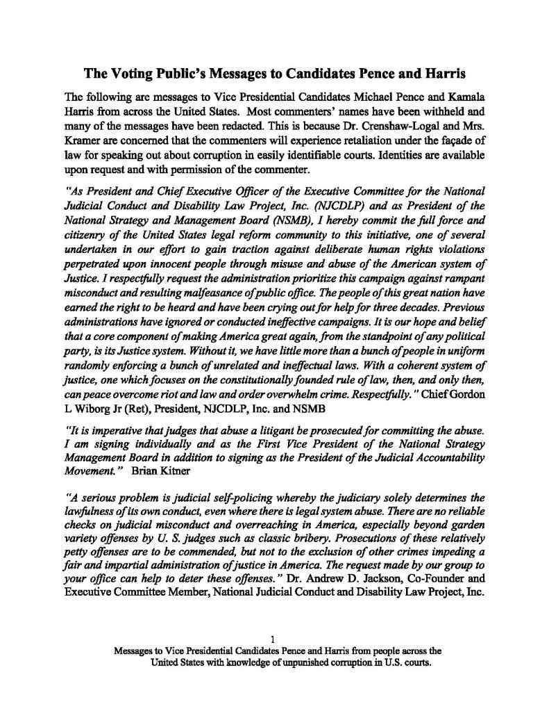 Seeking VP Candidates’ pledges to help stop corruption in U.S. courts